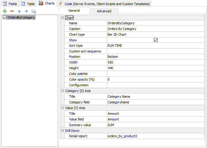 | Show | Show or hide the chart in the report page. |