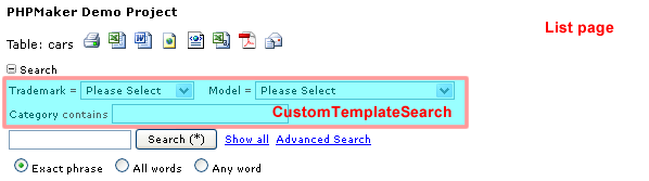 | CustomTemplateSearch | The Custom Template for Extended Search in List page, see Bootstrap Forms Layout or Grid system. |