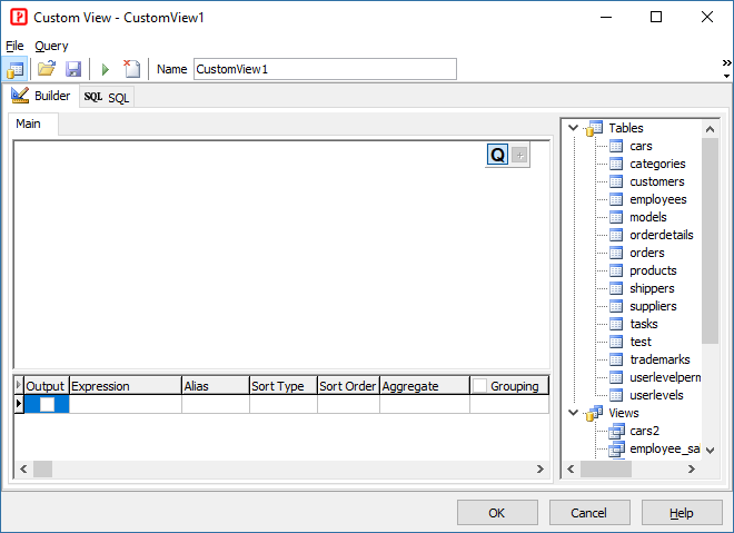 To build your SQL, drag your tables from the table pane on the left to the builder area and check the required fields.
