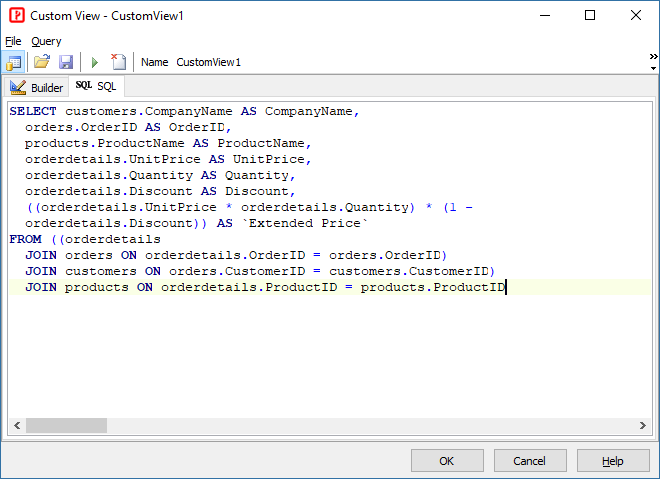 The SQL tab is actually an SQL editor, you can type your SQL directly without using the query builder here, or paste your SQL from elsewhere, or open a saved SQL script (*.sql) from file.