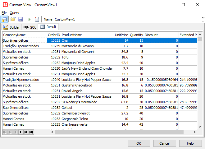 The Result tab will become visible and display the result data. If the data is correct, the Custom View setup is almost done.