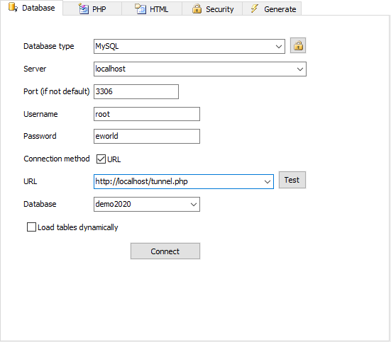 server may not allow direct connection. PHPMaker provides