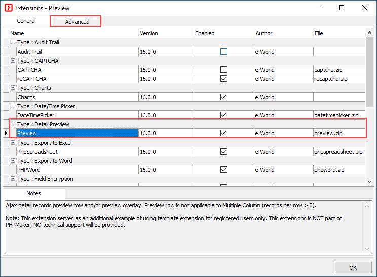 If you have the Preview extension (for registered users only) and want to enable detail record preview by Ajax, you can click Tools -> Extensions to enable it. Also see Third-Party Tools.