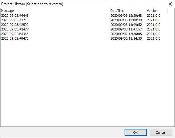 In additional to auto backup, PHPMaker also keeps project history. When you save a project, an old version will be created (not physical file). You can click Project -> History to view the history of a project file. By default the latest 50 versions (if available) will be listed. You can choose any one to revert to.