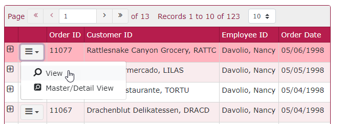 The "employees" table and "orders" table in the demo will be used in this example.