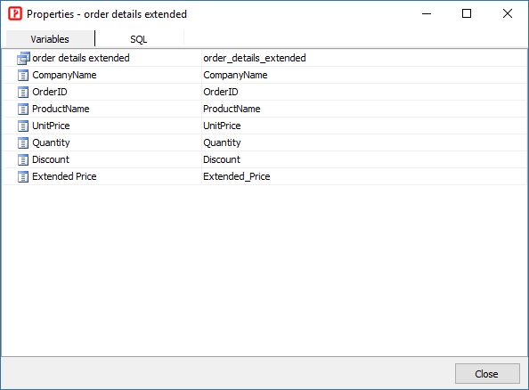 As for table and field variable names, if the table/field name is alphanumeric, the table/field variable name is same as the table/field name. Otherwise, spaces are replaced by underscores, and other non alphanumeric characters are replaced by their hexadecimal string representation of their unicode value. If the variable is a reserved word or starts with a digit, it will be prepended with an underscore. To check the table/field variable names used by the project, you can go the Database pane, right click a table and select Object Properties, you will see the variable names, e.g.