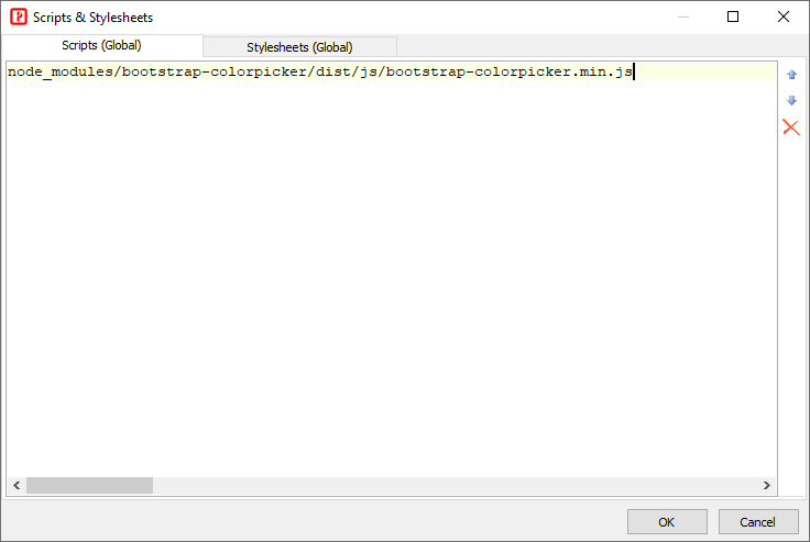 Manage JavaScripts and stylesheets for your project. These scripts will be included in the layout.php. The path(s) can be absolute URL, relative URL or absolute physical path. Absolute/Relative URL is recommended over physical path.