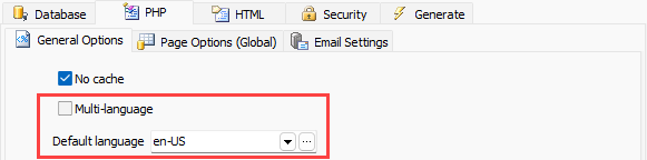 Then, select a Default Language in the PHP->General tab (see PHP Settings).