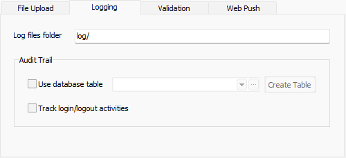 You can choose to log activities in a log file or in a database table. Log file folder - The folder where the audit trail log file resides. Notes