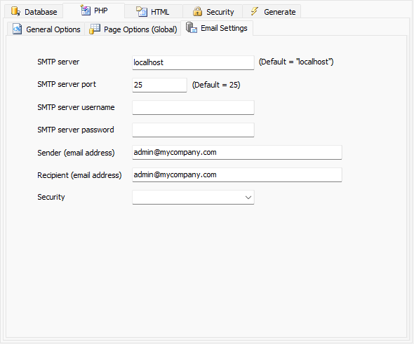 PHPMaker supports many features that can send emails. If you use these features, you'll need to specify a SMTP server.