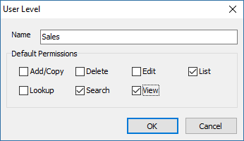 a new user level. Enter the description, and default permissions. Click OK to finish.