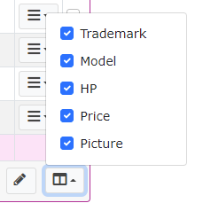 | Column Visibility | Specifies if the table columns in the List page can be shown/hidden by users. For table view only, Multi-Column List page (cards view) is not supported. Default is disabled. If enabled, a dropdown button will be enabled in the table's top/botton panel for user to select columns, e.g.
