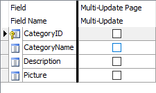 If a field is selected, it will be included in the Multi-Update page. In the generated Multi-Update page, there is a checkbox for each field, the field will only be updated if the checkbox is checked so users can update only the checked fields without affecting values of the other unchecked fields.