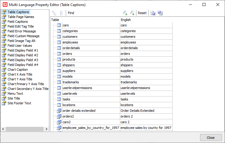 To edit these properties, click Tools -> Multi-Language Property Editor to open the editor. Alternatively, you can also click the small button next to above properties in the user interface to open.